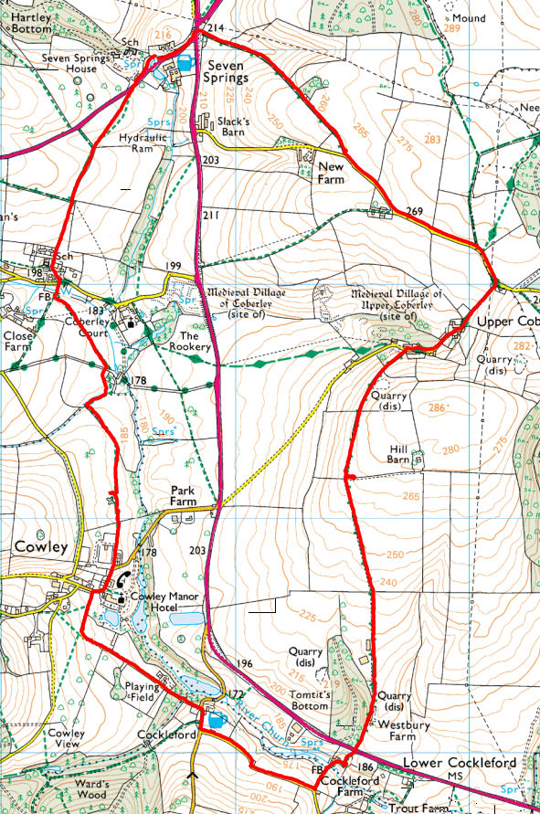 | Seven Springs, Coberley, Cowley and Tomtits Bottom 5.5 miles, 2 hr 12min, 358 ft vertical Lunch: Star College Bistro |